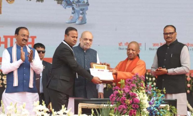 केन्द्रीय गृह एवं सहकारिता मंत्री अमित शाह ने उत्तर प्रदेश के मुख्यमंत्री योगी आदित्यनाथ की उपस्थिति में आज यहां राष्ट्र प्रेरणा स्थल में आयोजित ‘उत्तर प्रदेश दिवस’ के अवसर पर सरदार वल्लभ भाई पटेल इम्प्लॉयमेण्ट एण्ड इण्डस्ट्रियल जोन का शुभारम्भ तथा ‘एक जिला एक व्यंजन’ योजना की लॉचिंग की। कार्यक्रम में 05 विभूतियों विंग कमाण्डर शुभांशु शुक्ल, अलख पाण्डेय, रश्मि आर्य, डॉ0 हरिओम पंवार व डॉ0 सुधांशु सिंह को उत्तर प्रदेश गौरव सम्मान प्रदान किया गया। मुख्यमंत्री युवा उद्यमी विकास अभियान में उत्कृष्ट प्रदर्शन करने वाले 05 जनपदों (जौनपुर, आजमगढ़, हरदोई, अम्बेडकरनगर, झांसी) के जिलाधिकारियों को सम्मानित किया गया। उन्होंने भारत माता की प्रतिमा पर पुष्प अर्पित किये। इससे पूर्व, उन्होंने अन्य अतिथियों के साथ ‘विकसित भारत-विकसित उत्तर’ प्रदेश थीम पर आधारित प्रदर्शनी का अवलोकन किया।