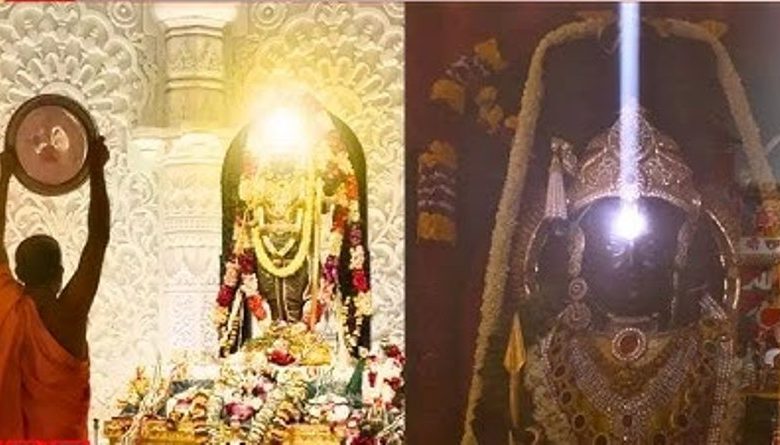 दोपहर ठीक 12 बजे सूर्य की स्वर्णिम किरणें चार मिनट तक रामलला के ललाट पर रहीं विराजमान